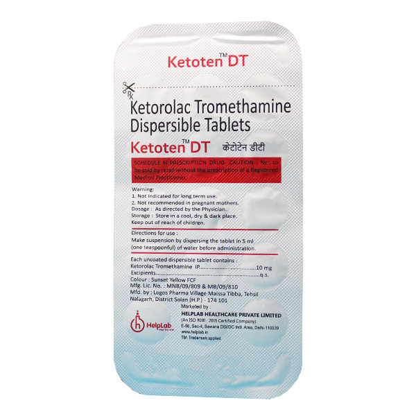 The KETOTEN DT TABLET from Helplab is designed to treat moderate to severe pain for a short period. It successfully reduces heat, inflammation, and pain. It must not be applied to minor or chronically painful problems.