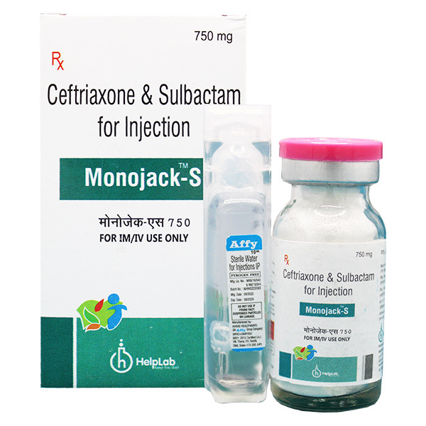The cephalosporin family of antibiotics, such as Helplab's Monojack 1000mg Injection, treats bacterial infections in your body. It works well against infections of the blood, heart, bones, lungs, brain (including meningitis), ear, urinary system, skin, soft tissues, and bones.