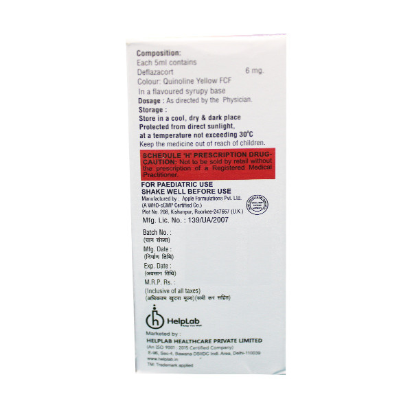 Each 5ml contains: Daflazacort 6mg Syrup (Mono).