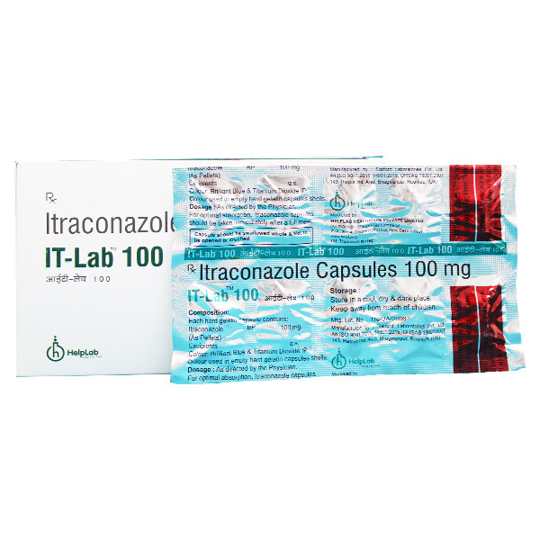 Helplab's IT-Lab 100mg is a member of the antifungals class of drugs. It is used to treat fungal infections of the mouth, throat, vagina, and other body parts, such as the fingernails and toenails. It works by preventing the growth of fungus. It eliminates fungus by rupturing the cell membrane.