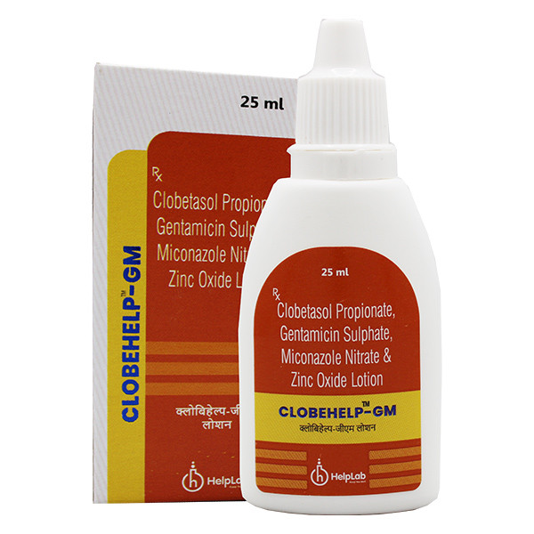 Clobehelp-GM Lotion from Helplab is a combination medicine that is used to treat various types of skin infections. By acting against the infection-causing microorganisms, it reduces inflammation symptoms such as redness, swelling, and itching.