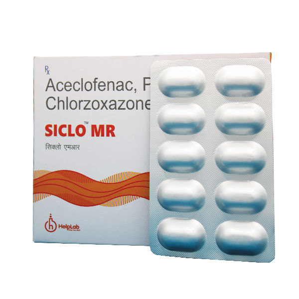 Helplab's Siclo MR 100mg/325mg/250mg Tablet is a combination medicine that aids in alleviating muscular discomfort. It prevents the production of specific chemical messengers that bring discomfort, inflammatory reactions, and fever. This facilitates better muscular movement and relieves pain and discomfort.