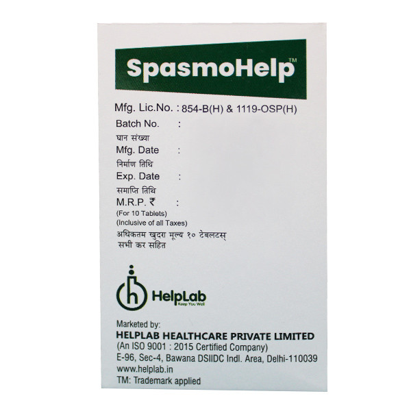 Dicyclomine and paracetamol, found in Helplab's SPASMOHELP TAB,