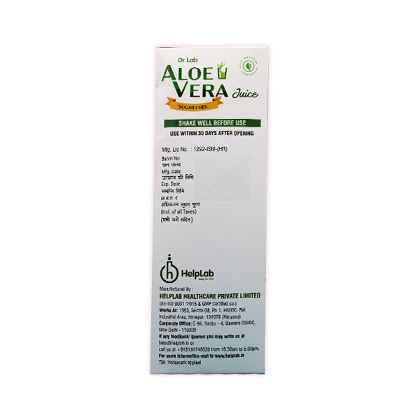 Helplab's DR. LAB ALOEVERA JUICE Aids in weight control and strengthens the immunological and digestive systems. It is a natural skin cleanser, an acne cure, and a body detoxifier. It also lowers high blood pressure and suits general health and wellness.