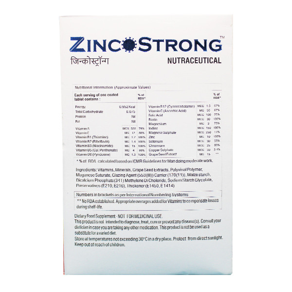 The Zincostong Tablet from Help Lab is a nutritional supplement that enhances immune system function and fosters general well-being. Each tablet contains a combination of zinc, vitamin c, and echinacea, scientifically proven to improve the immune system's capacity to fight infections and disorders.